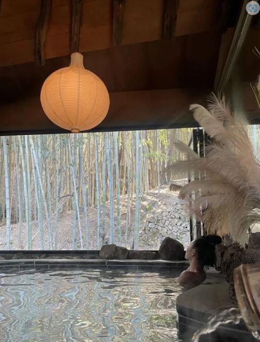 마마무 화사는 노천탕에 앉아서 대나무 숲을 바라보며 휴식을 즐겼다. 숙소가 얼마나 좋은지 야외를 바라보며 딸기를 씻고 마치 캠핑처럼 '불멍'도 즐겼다.