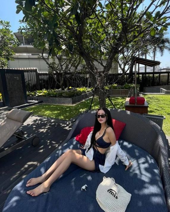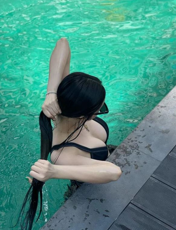 큐리는 지난 14일 자신의 인스타그램에 "swimming pool essentials"이라는 멘트와 함께 여유롭게 휴식을 즐기는 모습이 담긴 사진 여러 장을 공개했다. 티아라 멤버 큐리는 가슴골이 드러나는 과감한 비키니와 함께 선글라스를 착용한 채 포즈를 취했다. 겉에는 얇은 블라우스를 살짝 걸쳤다. 상체와 입술을 내밀며 섹시미를 극대화했다.